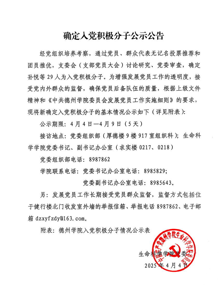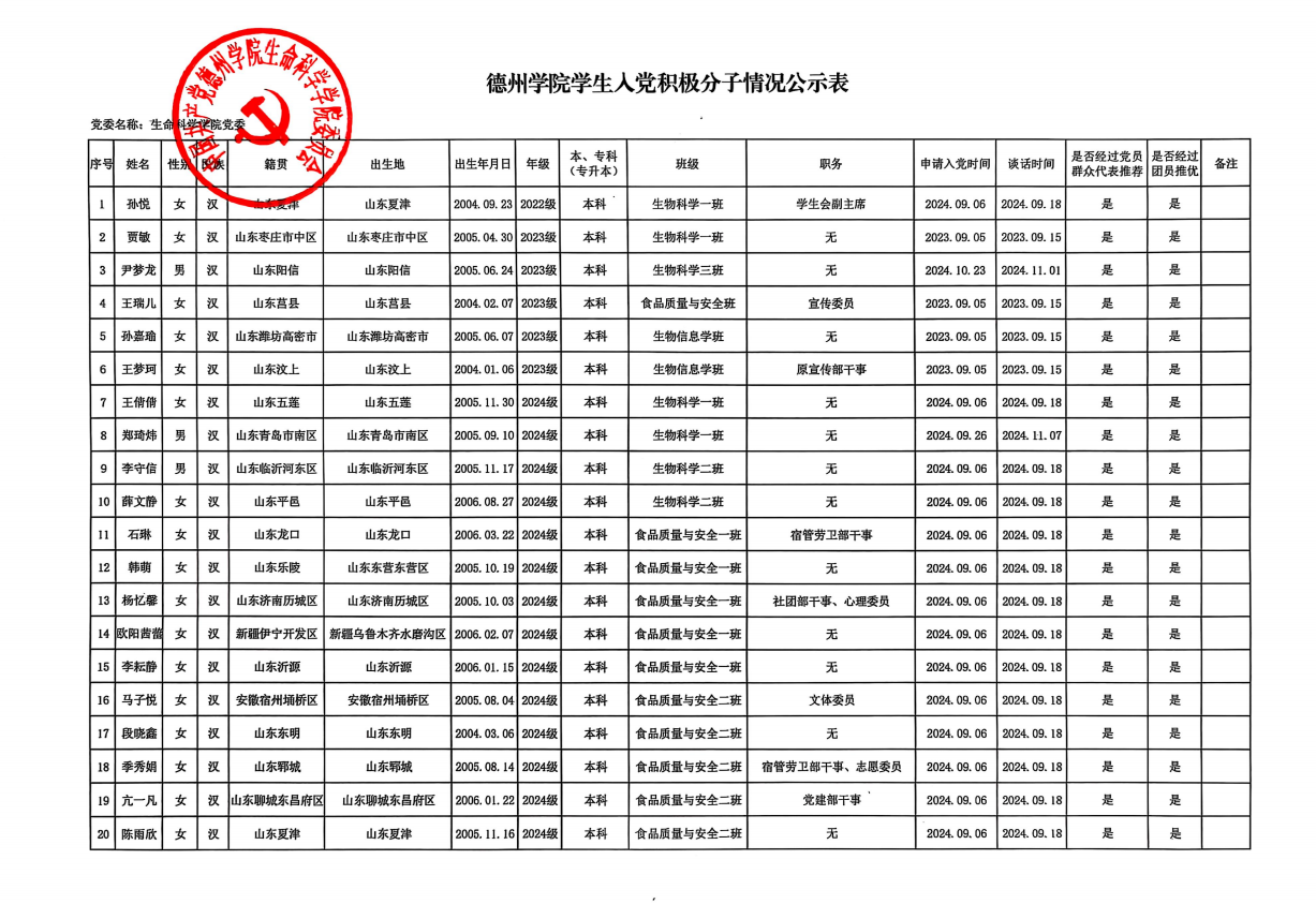德州学院精品视频8AV拟确定党员发展对象公示情况