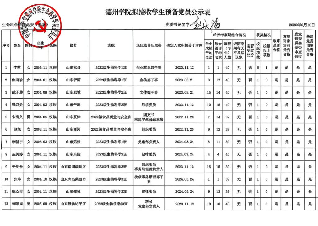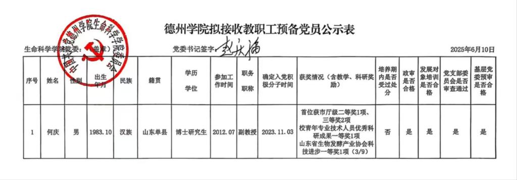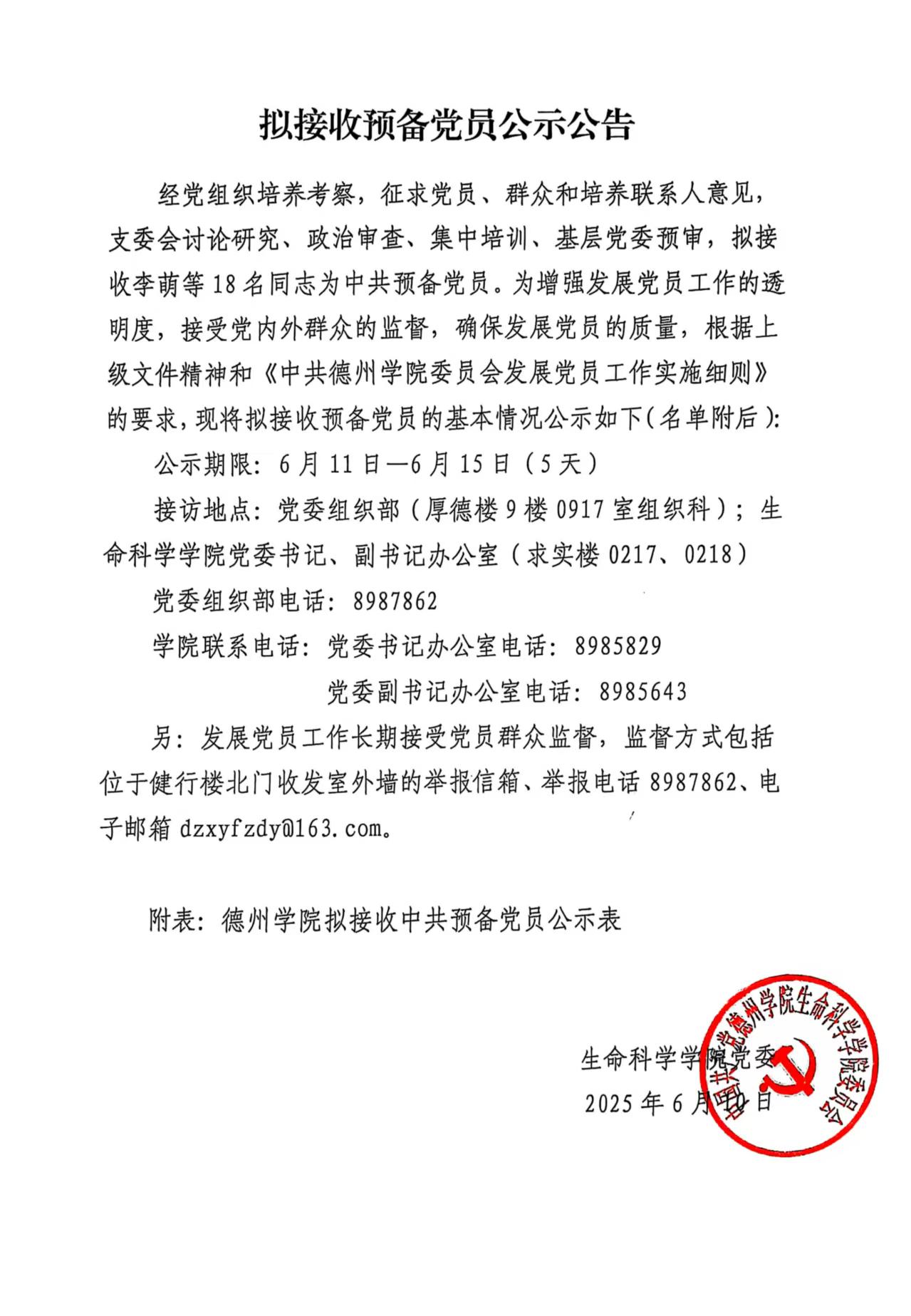 德州学院精品视频8AV拟确定党员发展对象公示情况