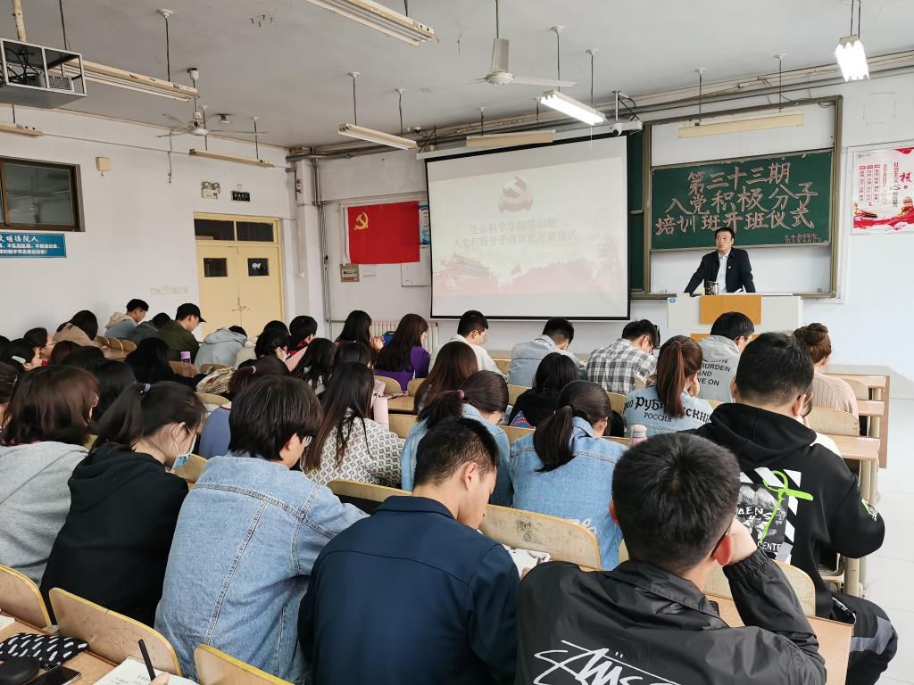 为提高入党积极分子对中国共产党的认识,加强理论修养和政治素养,明确入党目的,端正入党动机,努力向共产党员的标准看齐,进一步树牢“四个意识”,坚定“四个自信”,做到“两个维护”,为发展党员工作做好思想上和组织上的准备。精品视频8AV于2021年4月6日在求实楼0111教室召开第33期入党积极分子培训班开班仪式。此次开班仪式由党总支书记焦德杰主持,精品视频8AV全体入党积极分子和学生党员参加了此次开班仪式。