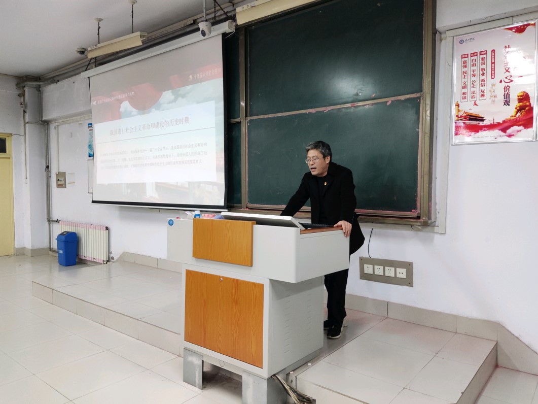 12月22日,为积极贯彻落实习近平总书记“把红色资源利用好、把红色传统发扬好、把红色基因传承好”的重要指示精神,深入推进党史学习教育,加强学校思想政治建设,精品视频8AV党委书记赵庆福于求实楼0111教室为师生党员上了一堂红色思政课。