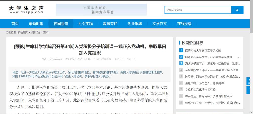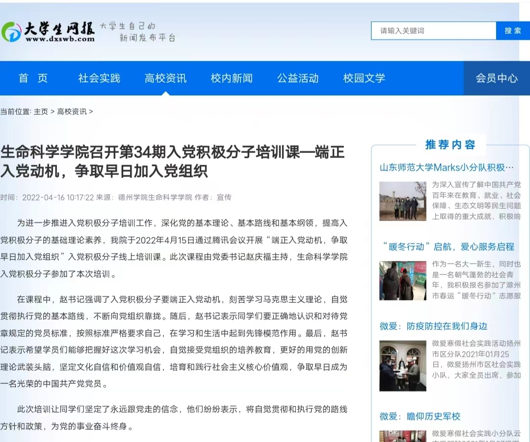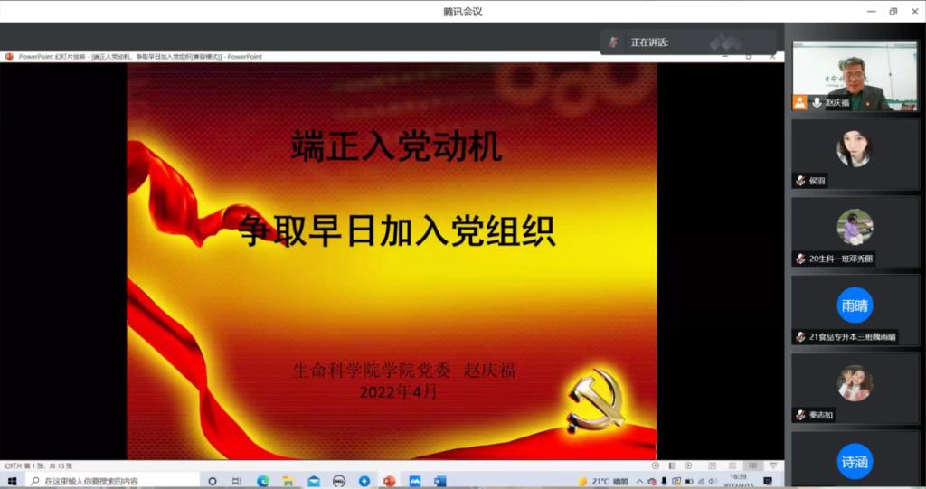 为进一步推进入党积极分子培训工作,深化党的基本理论、基本路线和基本纲领,提高入党积极分子的基础理论素养,我院于2022年4月15日通过腾讯会议开展“端正入党动机,争取早日加入党组织”入党积极分子线上培训课。此次课程由党委书记赵庆福主持,精品视频8AV入党积极分子参加了本次培训。