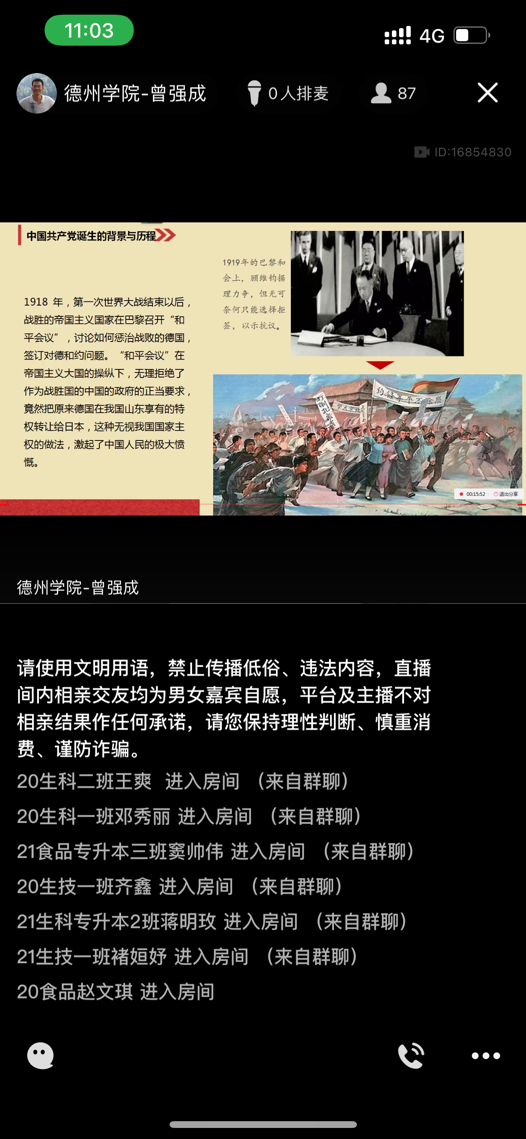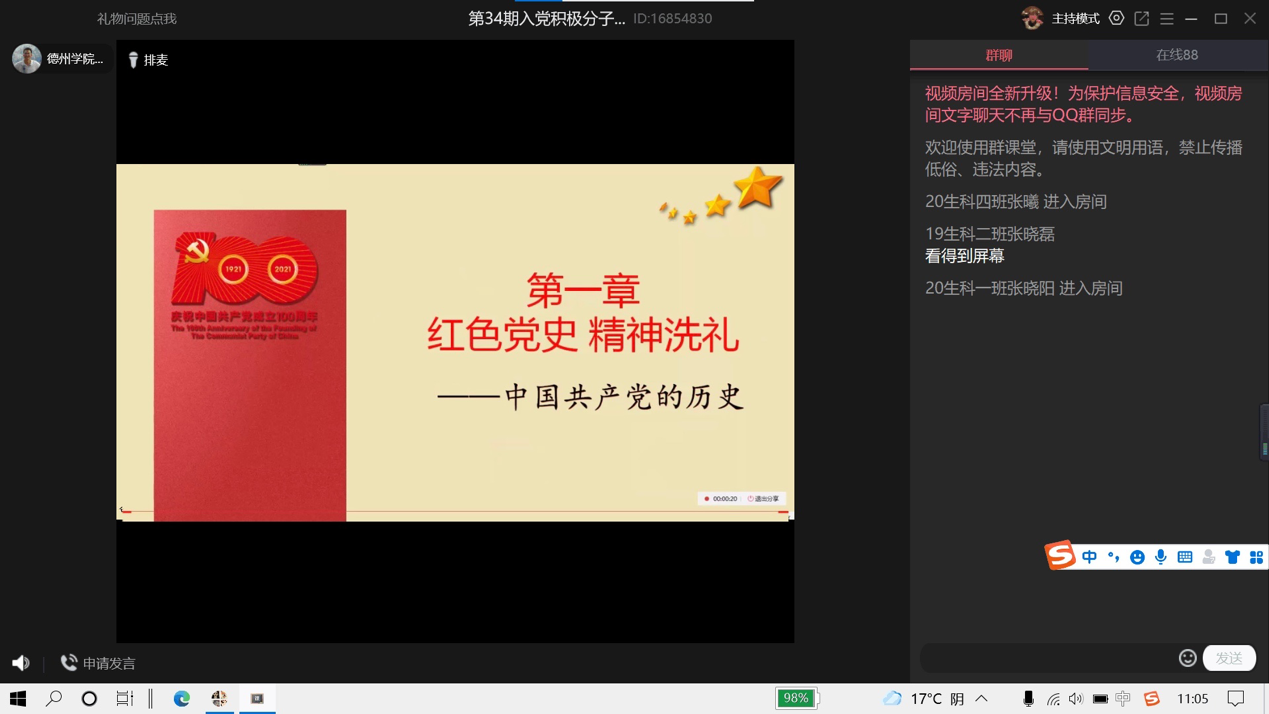 为进一步增强入党积极分子对党的基本理论知识的了解,提高他们的理论水平,精品视频8AV于2022年4月16日在腾讯会议开展“红色党史,精神洗礼”入党积极分子线上培训课。此次课程由院长曾强成主持,精品视频8AV入党积极分子参加了本次培训。