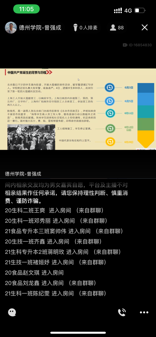 百年征程波澜壮阔,百年初心历史弥坚。曾院长分别从中国共产党的诞生,没有共产党就没有新中国,新中国成立后的艰难探索之路,从改革开放到走进新时代四个方面向同学们生动形象地诠释了中国共产党是如何取得从播下革命火种的小小红船,到领航复兴伟业的巍巍巨轮的成就。除此之外,曾院长还表示,在百年奋斗历程中,我们党领导人民取得了举世瞩目的辉煌成就,书写了波澜壮阔的历史画卷,留下了弥足珍贵的精神财富,作为青年大学生更要学好党史,勇做新时代的追梦人。