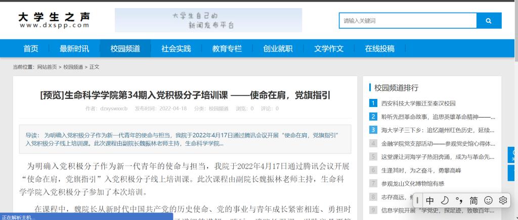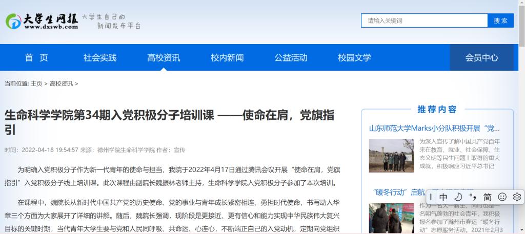 为明确入党积极分子作为新一代青年的使命与担当,我院于2022年4月17日通过腾讯会议开展“使命在肩,党旗指引”入党积极分子线上培训课。此次课程由副院长魏振林老师主持,精品视频8AV入党积极分子参加了本次培训。