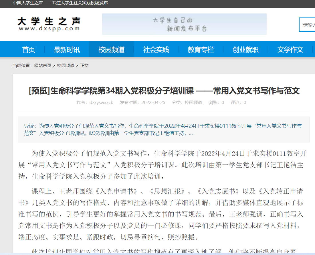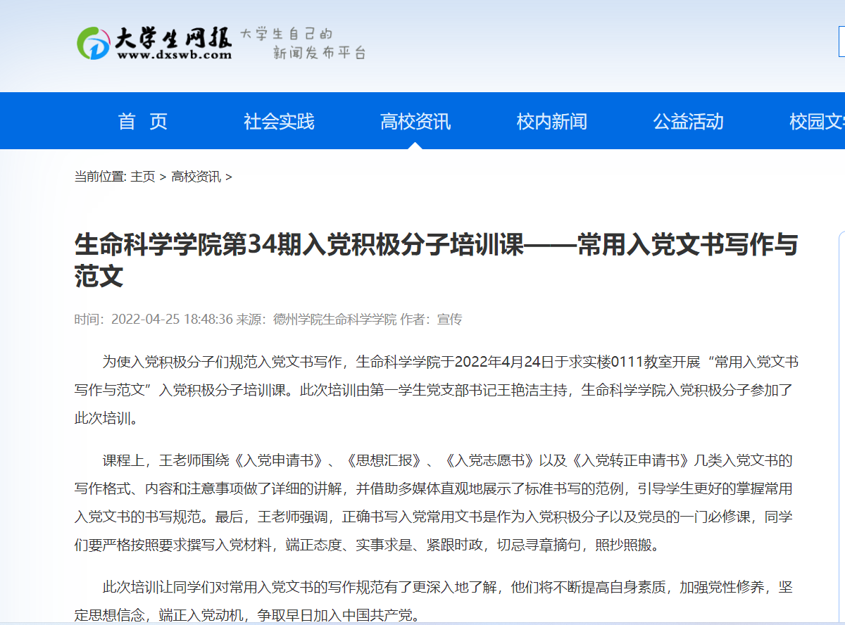此次培训让同学们对常用入党文书的写作规范有了更深入地了解,他们将不断提高自身素质,加强党性修养,坚定思想信念,端正入党动机,争取早日加入中国共产党。