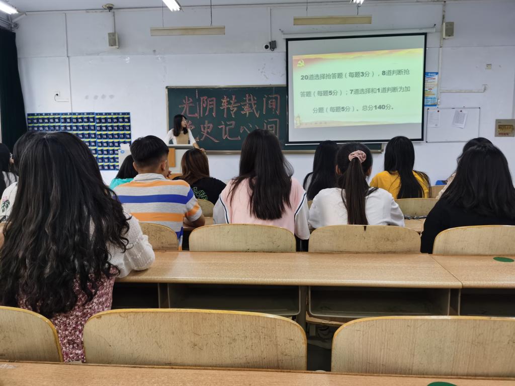 为提高同学们政治素养,激发他们学习党史的热情,积极引导同学们了解党的光辉历史,增强同学们的爱国主义情怀。精品视频8AV于2021年5月30日在0107教室举办“光阴转载间,党史记心间”党史快问快答知识竞赛活动。
