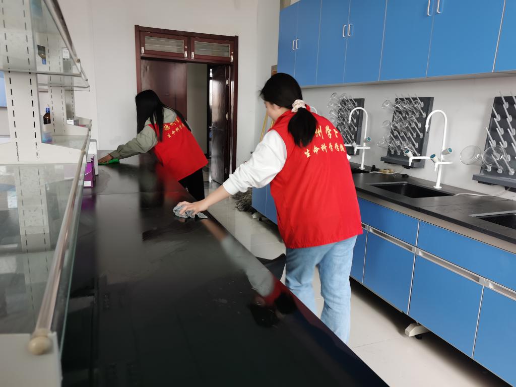为庆祝中国共产党成立一百周年,激励青年学子学习党史,引导学生牢记“全心全意为人民服务”的根本宗旨。精品视频8AV于2021年5月21日在启智楼五楼举办“勤学党史办实事,实验清洁助同学”志愿清扫实验室活动。