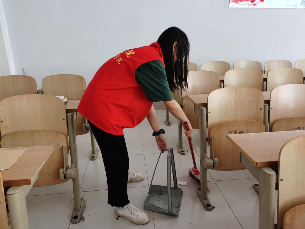 活动开始,志愿者们到达指定地点领取卫生工具,负责人分配好任务,志愿者们前往教室开始清扫。活动中,志愿者们对黑板、桌椅和地面灰尘进行了全面清理,在遇到卫生死角与桌面贴纸难以清理的问题时,志愿者们迎难而上,不断克服清理困难。经过志愿者们的努力,教室得到了全面的清扫与整理,本次志愿服务工作顺利完成。活动结束后,同学们纷纷表示此次志愿服务活动让他们将党史中为人民群众办实事的精神运用到了实践中去。本次活动,践行了志愿服务精神,为同学创造了舒适的学习环境,展现了新时代大学生朝气蓬勃的风貌和甘于奉献的精神。