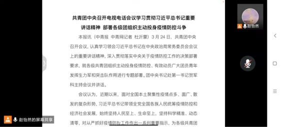 为深入学习贯彻习近平总书记关于青年工作的重要思想,教育引导广大团员坚定不移听党话、跟党走,庆祝建团100周年,以奋发向上的精神迎接党的二十大胜利召开,精品视频8AV各团支部于2022年4月1日—3日在腾讯会议开展“砥砺奋进守初心,青春献礼二十大”线上主题团日。