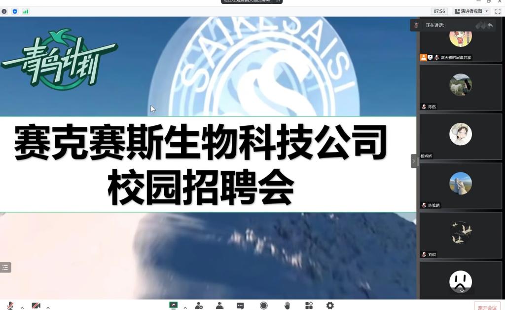 为更好拓宽毕业生就业渠道,精品视频8AV于5月28日举办了赛克赛斯生物科技有限公司线上宣讲。宣讲会由赛克赛斯生物科技有限公司负责人主持,相关专业的毕业生参加。